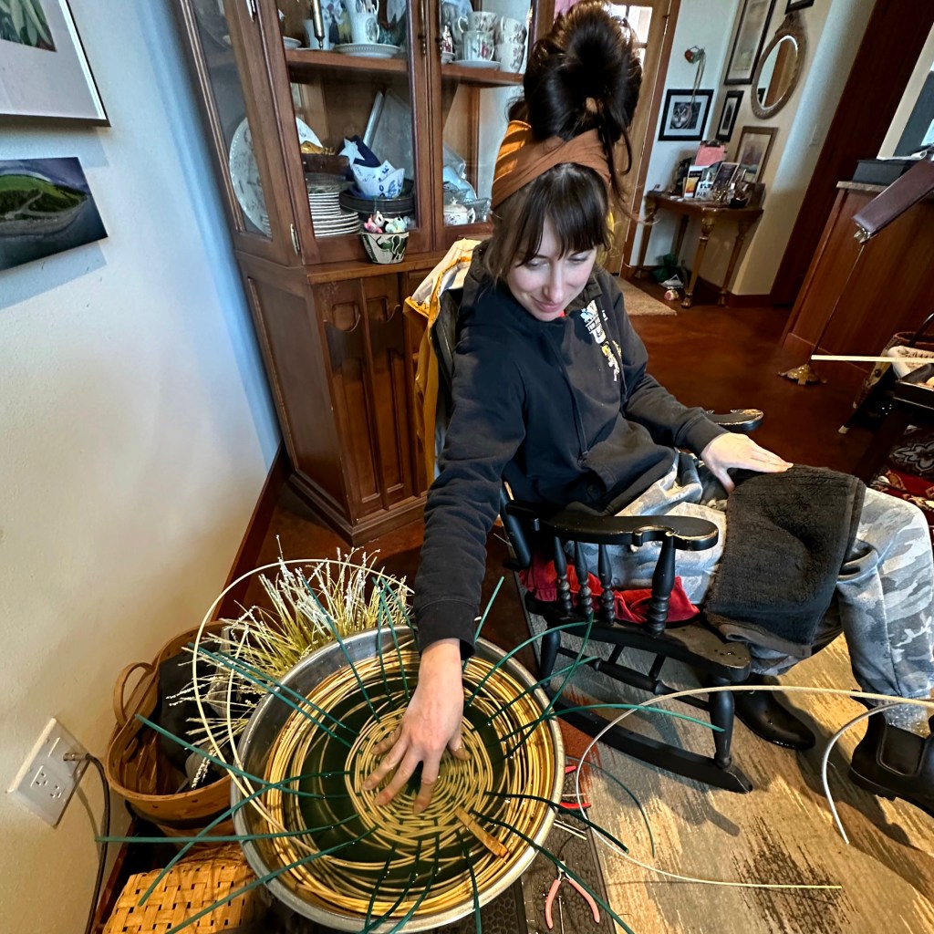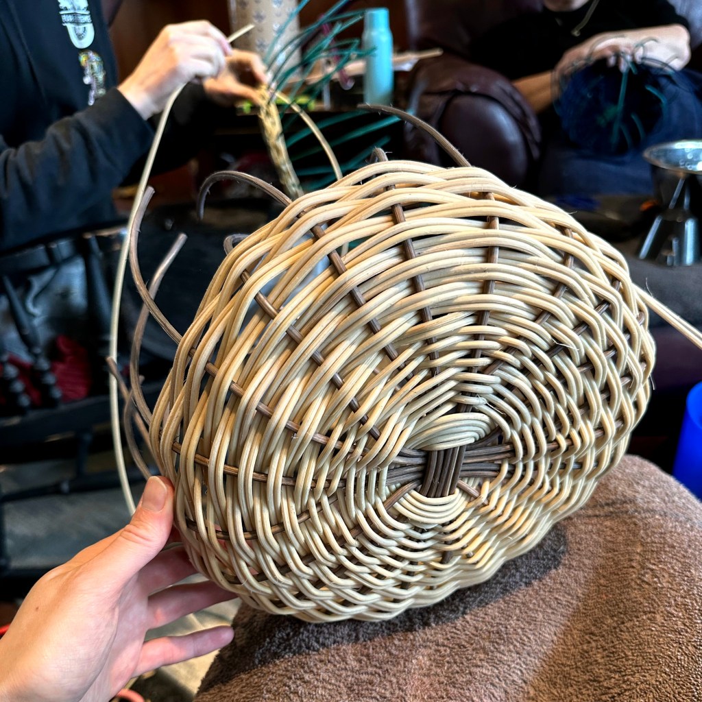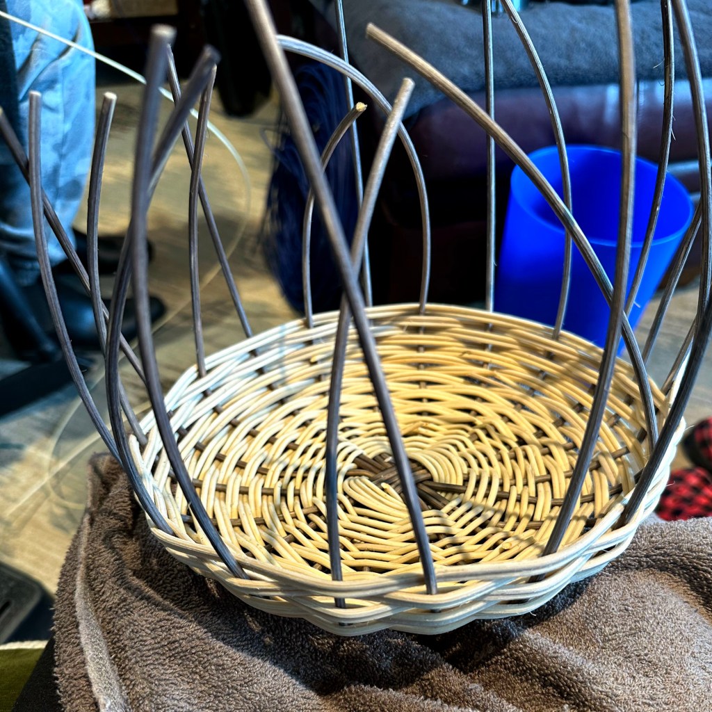 Now how did I end up at a basket weaving class? I didn’t think it would be on my list of hobbies to try but here we are. I’m a serial crafter. I’ll try various things until I find a niche that jives with me. With my self-diagnosed Reynaud’s Syndrome, I figure bending and twisting wooden reeds in hot water sounds great to me!
